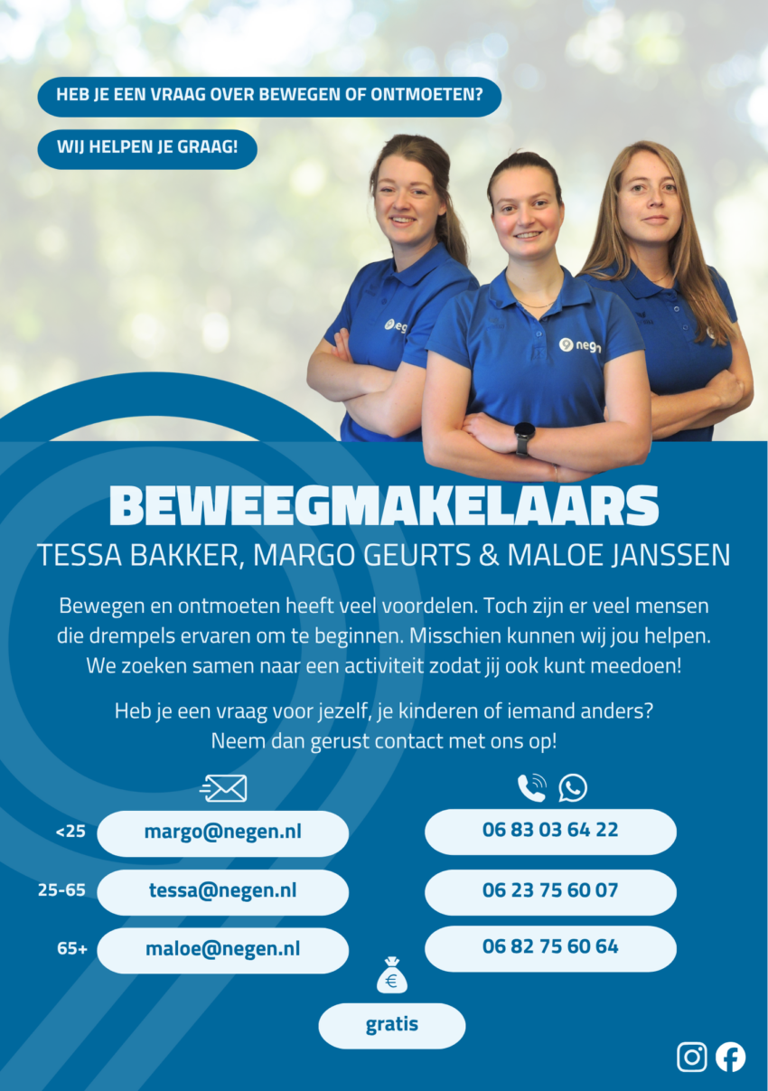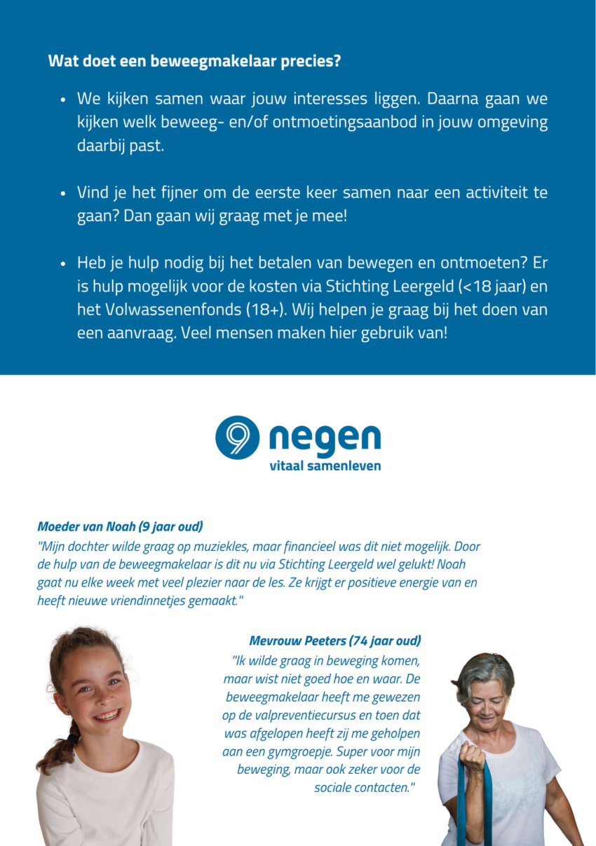 Meer informatie over de beweegmakelaars? Neem dan contact met ons op via de gegevens op de flyer.